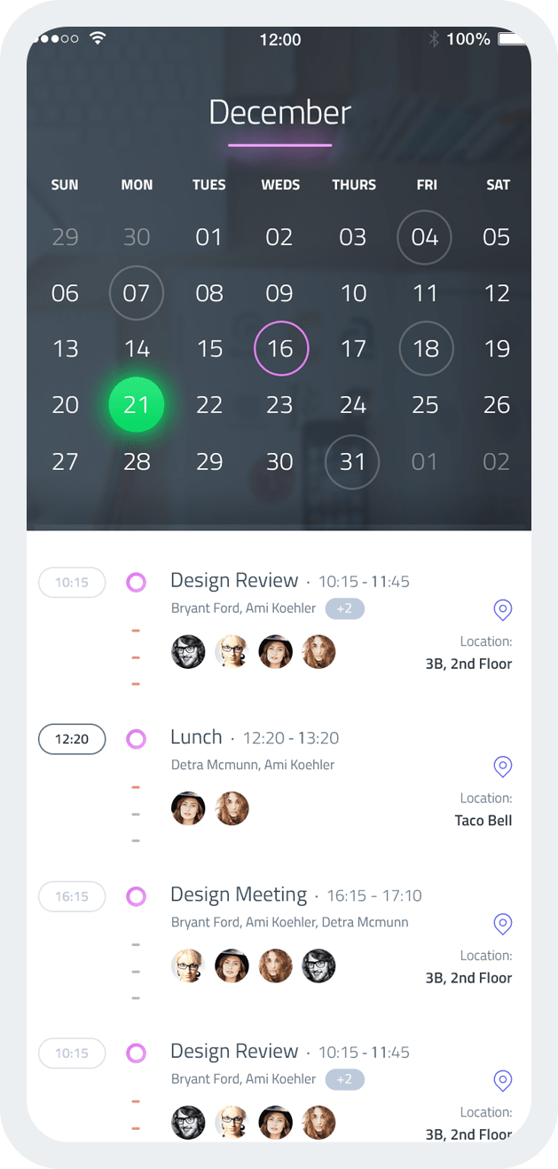 Schedule your appointments, meetings and periodical goals evaluations using the provided in-app calendar option. This is a core functionality you should download the app